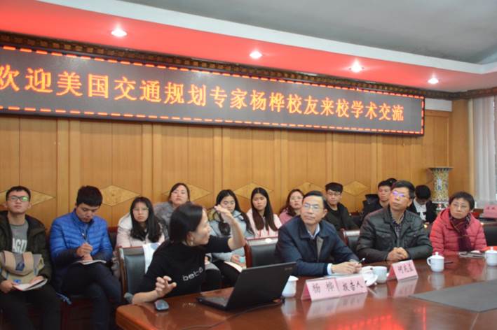 2018年12月10日下午4点30分,美国交通规划专家、我校93级校友杨桦博士在我校713贵宾会检测线路会议室进行了学术交流,并做了题为《区域交通规划模型在美国城市规划中的应用》的学术报告。本次学术交流会由713贵宾会检测线路、重庆交通大学校友会、重庆市交通运输工程重点实验室共同举办。参与本次交流会的有学院院长何兆益、副院长李淑庆以及其他教师、部分研究生、本科生。